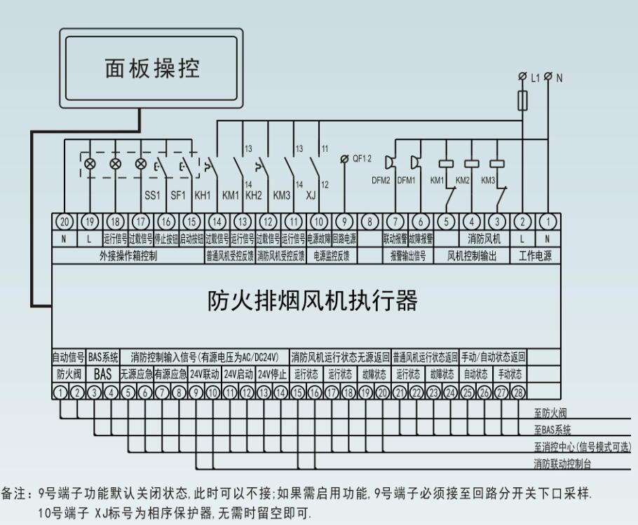 11~14 消防信號接口:DC24V消防標準模塊接口;報警和工作狀態(tài)信號反饋接口可根據(jù)實際情況增加接口數(shù)量和接口類型;