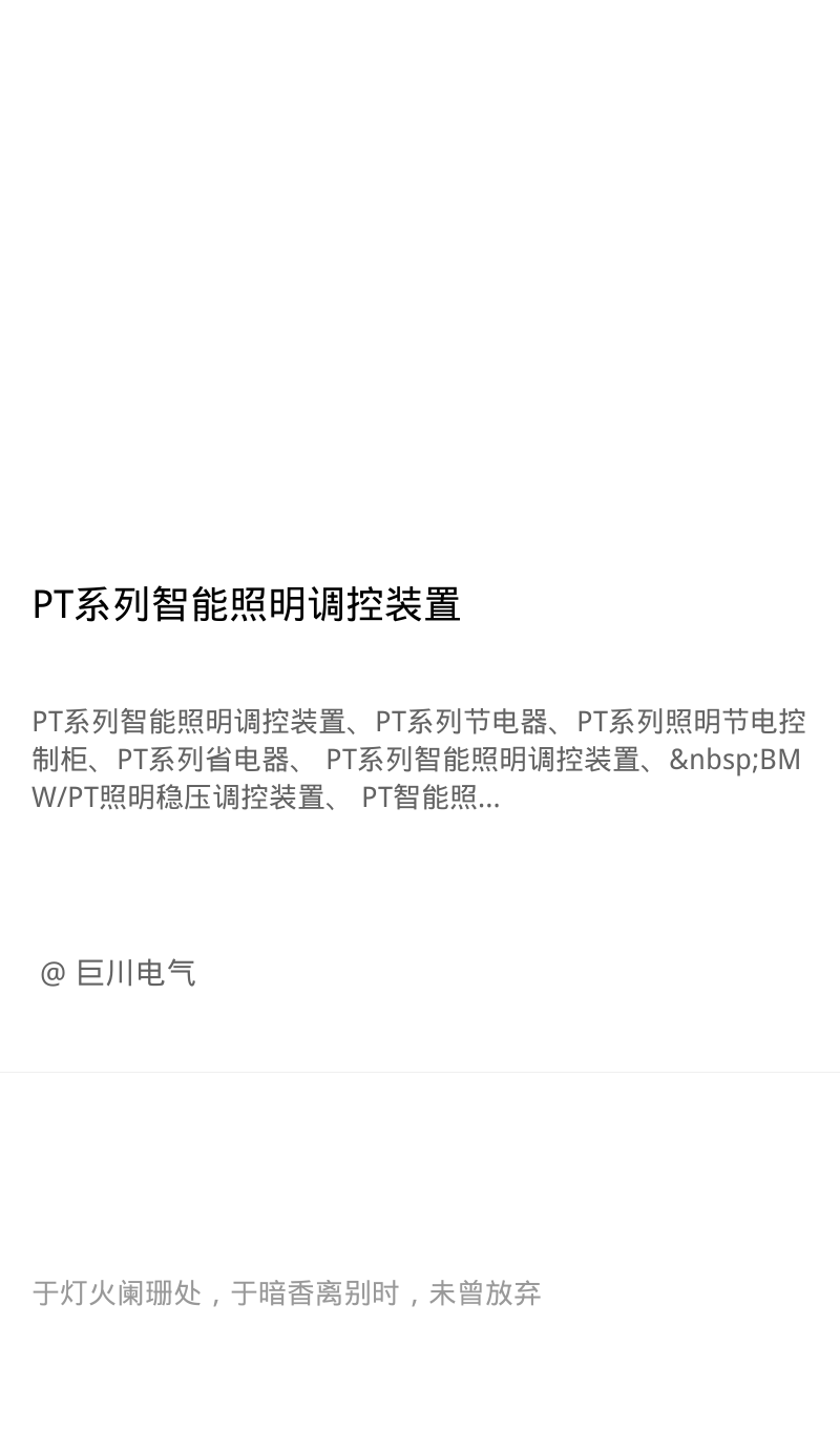 PT系列智能照明調(diào)控裝置、PT系列節(jié)電器、PT系列照明節(jié)電控制柜、PT系列省電器、 PT系列智能照明調(diào)控裝置、?BMW/PT照明穩(wěn)壓調(diào)控裝置、 PT智能照明控制、ATC-3000、ATC-9000、SPT-7000A電力/電纜智能監(jiān)測防盜系統(tǒng)、HMFD-2008智能型路燈電纜防盜報警系統(tǒng)、NE系列照明調(diào)控裝置、NET系列節(jié)電控制柜、DL系列照明調(diào)控裝置、ELC-B系列智能照明穩(wěn)壓控制器、AIX-2C智能節(jié)能照明控制器、NJPOWER NPZM智能照明節(jié)能系統(tǒng)、NPLS-X/3T智能節(jié)電器、BS3-100/LSQ智能照明控制柜。