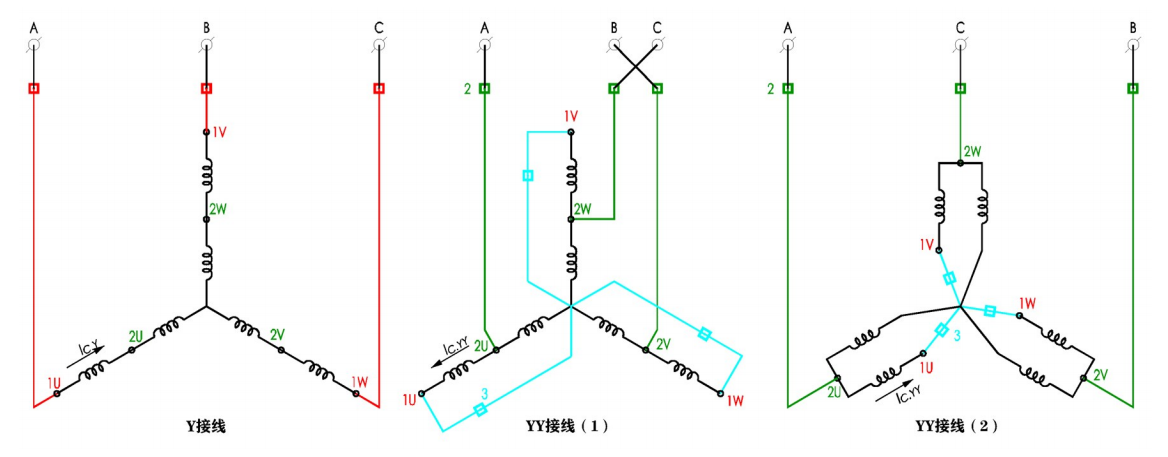 △/YY接線不適合于風機類負載,更適合于恒功率負載;Y/YY接線、Y/Y接線均適合于風機類負載的變極調(diào)速。
