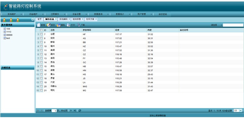 (4)實現(xiàn)對單燈進行開關(guān)和連續(xù)調(diào)光,可以一鍵開啟全城路燈;可以分區(qū)、分組進行監(jiān)控;
