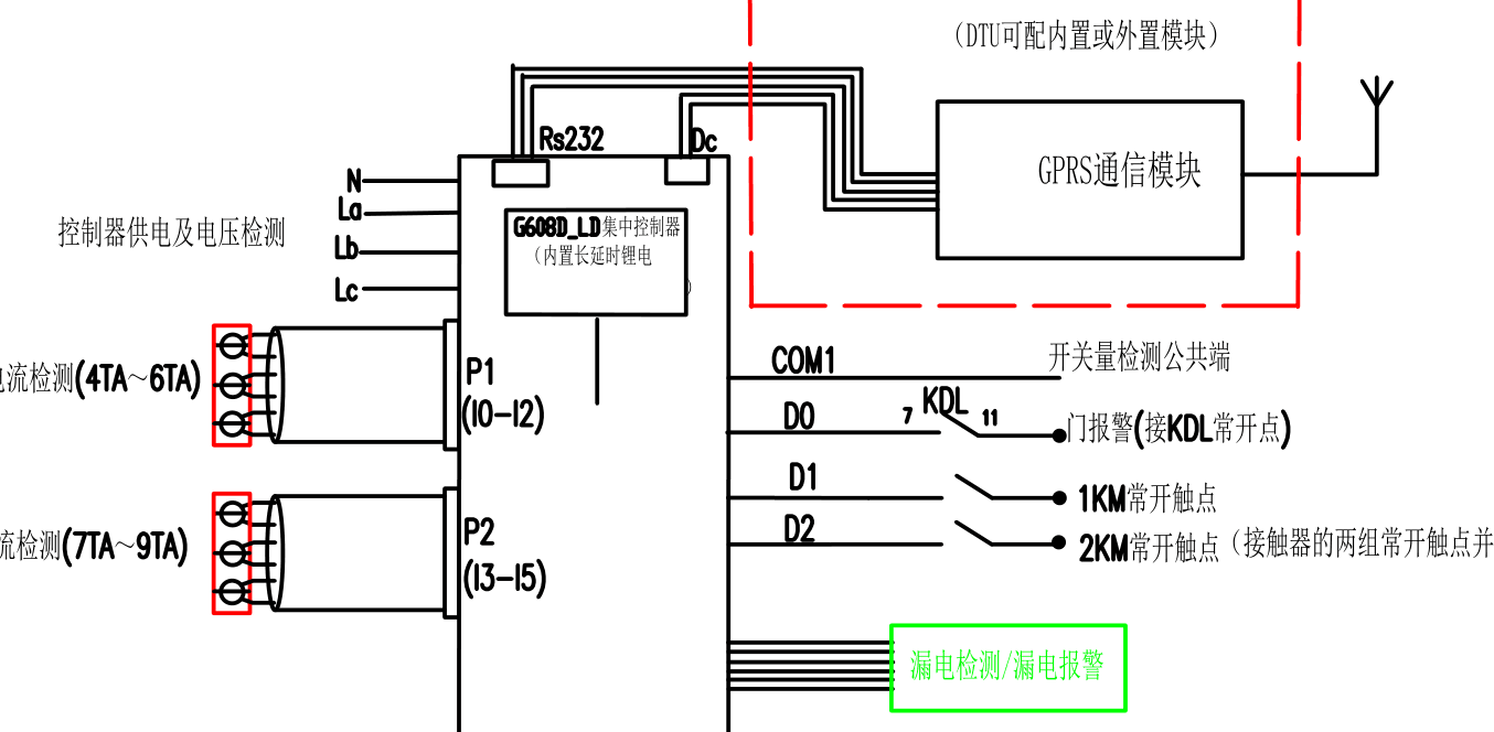 #智能控制裝置可利用RS485通訊接口連接多功能電表,對(duì)用電參數(shù)進(jìn)行采集上傳。