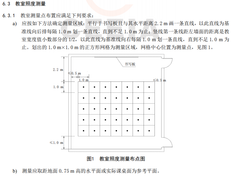 4.1 應(yīng)在教室正常使用和排除室內(nèi)家具或人員遮擋等不利影響的情況下進(jìn)行光環(huán)境測(cè)量。