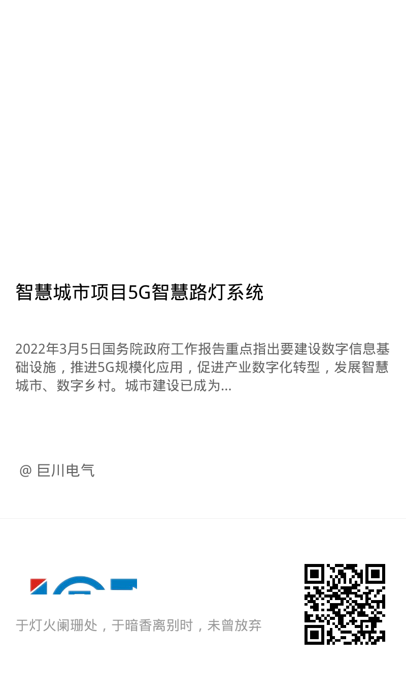 2022年3月5日國務(wù)院政府工作報(bào)告重點(diǎn)指出要建設(shè)數(shù)字信息基礎(chǔ)設(shè)施,推進(jìn)5G規(guī)?;瘧?yīng)用,促進(jìn)產(chǎn)業(yè)數(shù)字化轉(zhuǎn)型,發(fā)展智慧城市、數(shù)字鄉(xiāng)村。城市建設(shè)已成為推動(dòng)我國經(jīng)濟(jì)改革、產(chǎn)業(yè)升級,提升城市綜合競爭力的重要驅(qū)動(dòng)力。如今基礎(chǔ)設(shè)施建設(shè)智慧路燈系統(tǒng)已飛入尋常百姓家,城市建設(shè)快速發(fā)展一方面大大提升了城市的現(xiàn)代化水平, 落地的智能化行業(yè)場景,具有自學(xué)習(xí)成長能力的智慧大腦,讓社會(huì)大眾真實(shí)感受到城市的智慧和便利。