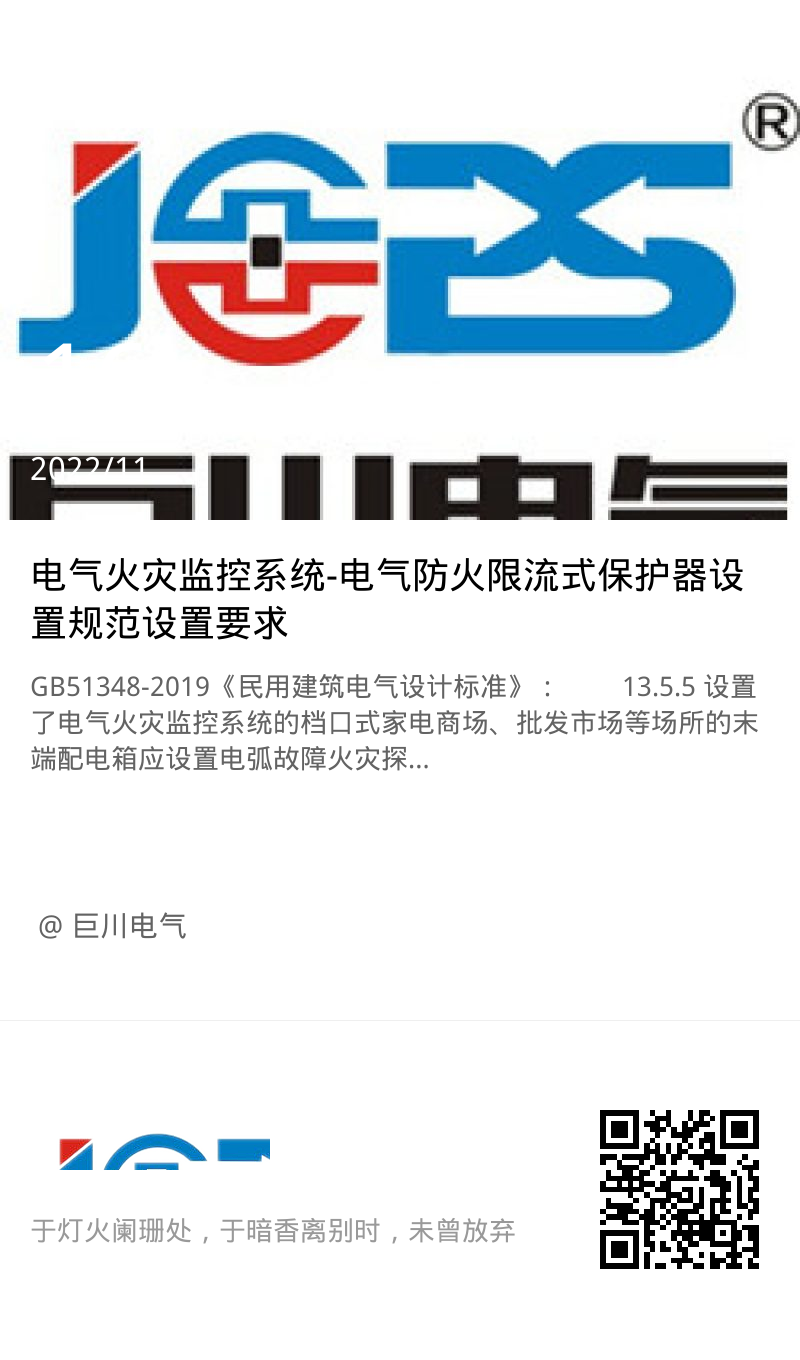 13.5.5 設(shè)置了電氣火災(zāi)監(jiān)控系統(tǒng)的檔口式家電商場(chǎng)、批發(fā)市場(chǎng)等場(chǎng)所的末端配電箱應(yīng)設(shè)置電弧故障火災(zāi)探測(cè)器或限流式電氣防火保護(hù)器。儲(chǔ)備倉(cāng)庫(kù)、電動(dòng)車充電等場(chǎng)所的末端回路應(yīng)設(shè)置限流式電氣防火保護(hù)器。