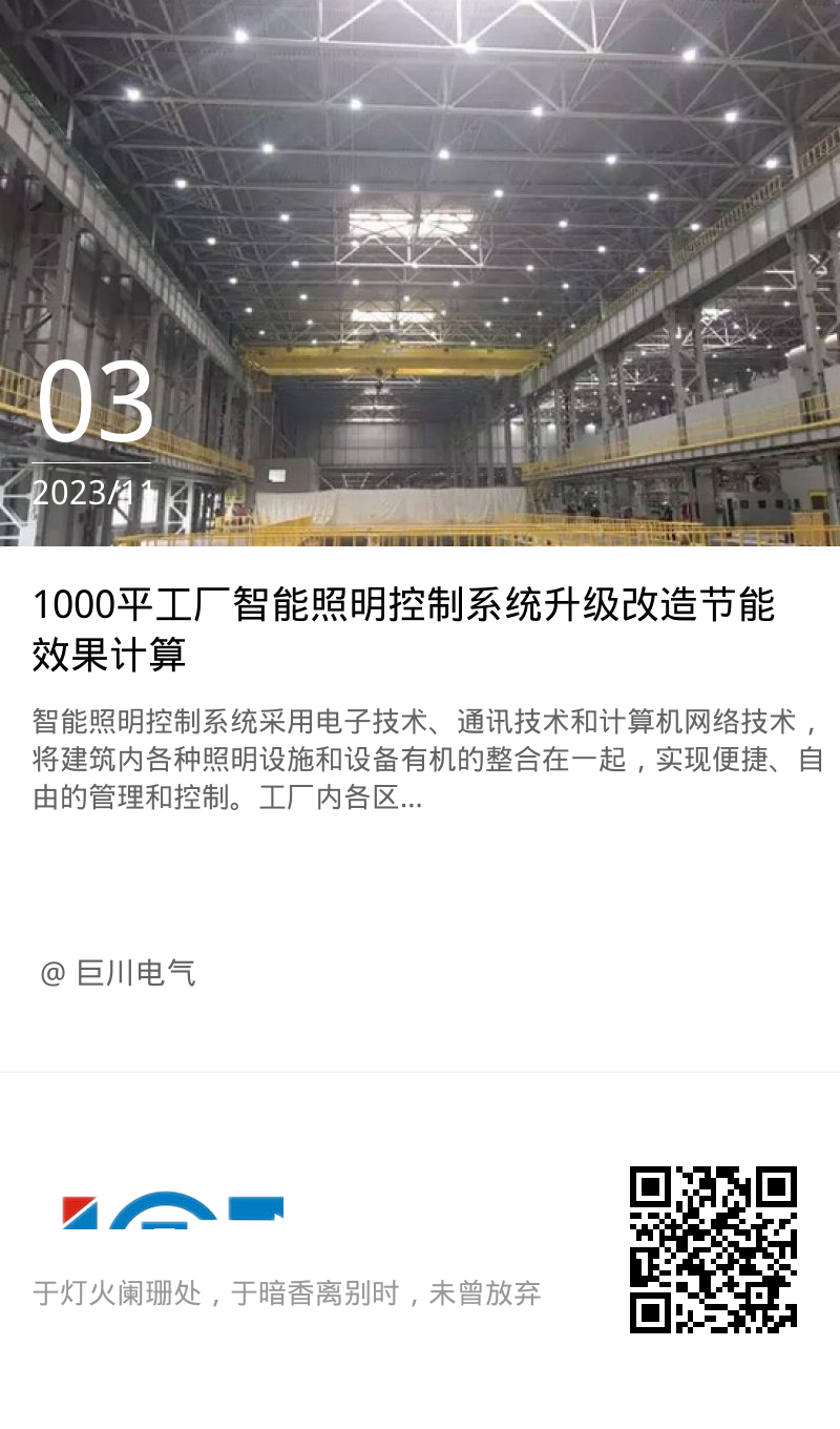 1000平工廠智能照明控制系統(tǒng)改造升級節(jié)能效果計算:
