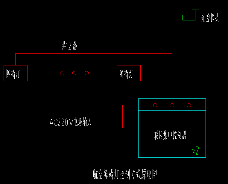 說明:1.采用中光強紅色聯(lián)閃航空障礙燈12盞,聯(lián)閃集中控制器1套: