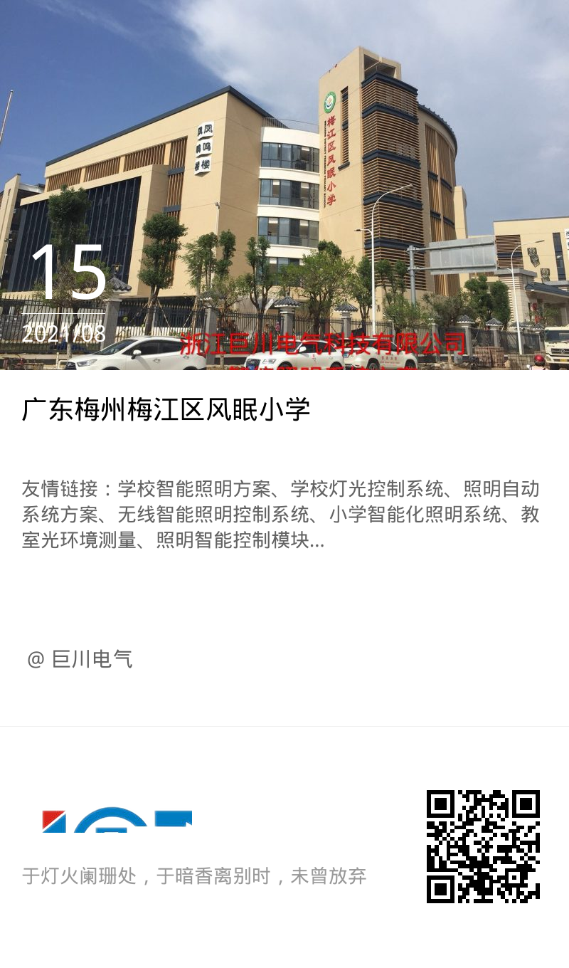 廣東梅州梅江區(qū)風眠小學 巨川電氣 2021-08-15 2189 預計閱讀需要1分鐘 友情鏈接:學校智能照明方案、學校燈光控制系統、照明自動系統方案、無線智能照明控制系統、小學智能化照明系統、教室光環(huán)境測量、照明智能控制模塊、智能照明控制器、自動燈光控制系統、智能照明控制系統、智能照明模塊、路燈遠程控制系統、照明調光器、照明調光模塊、智能調光模塊、照明拓展模塊。 展開閱讀全文