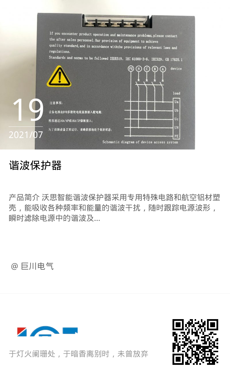 6.諧波保護(hù)器本身不耗電,經(jīng)久耐用,安全可靠。